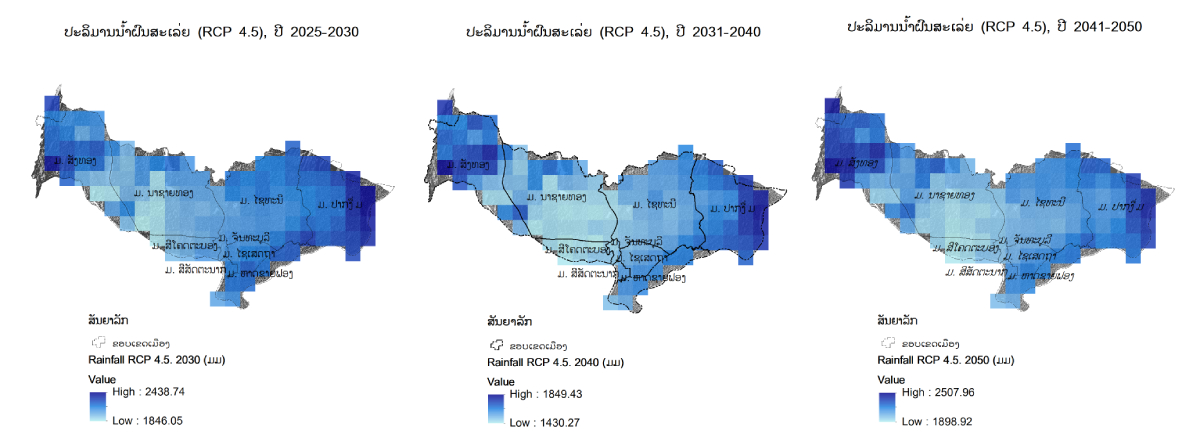 ຄາດຄະເນ ປະລິມານນ້ຳຝົນສະເລ່ຍ (RCP 4.5)