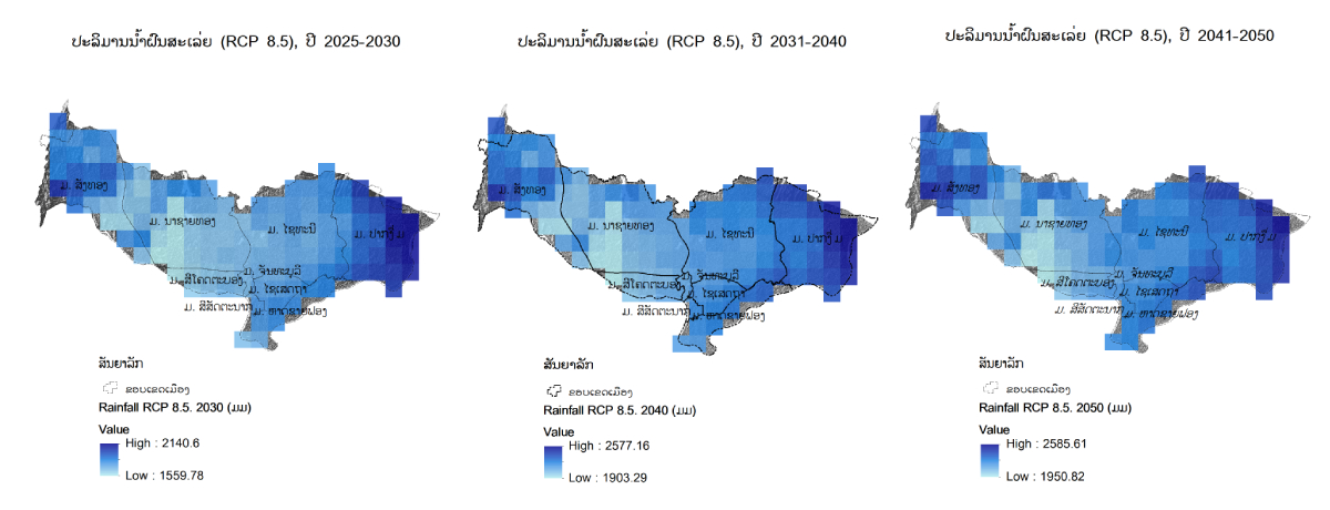 ຄາດຄະເນ ປະລິມານນ້ຳຝົນສະເລ່ຍ (RCP 8.5)